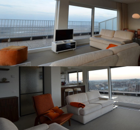 Dieses Appartement liegtt neben dem Gemeinschaftsappartement mit frontalem sowie seitlichem Meerblick, da es sich um ein Eck-Penthaus handelt. Der Wohnraum verfügt über bodentiefe Fenster, welche ein phänomenales Panorama bieten.